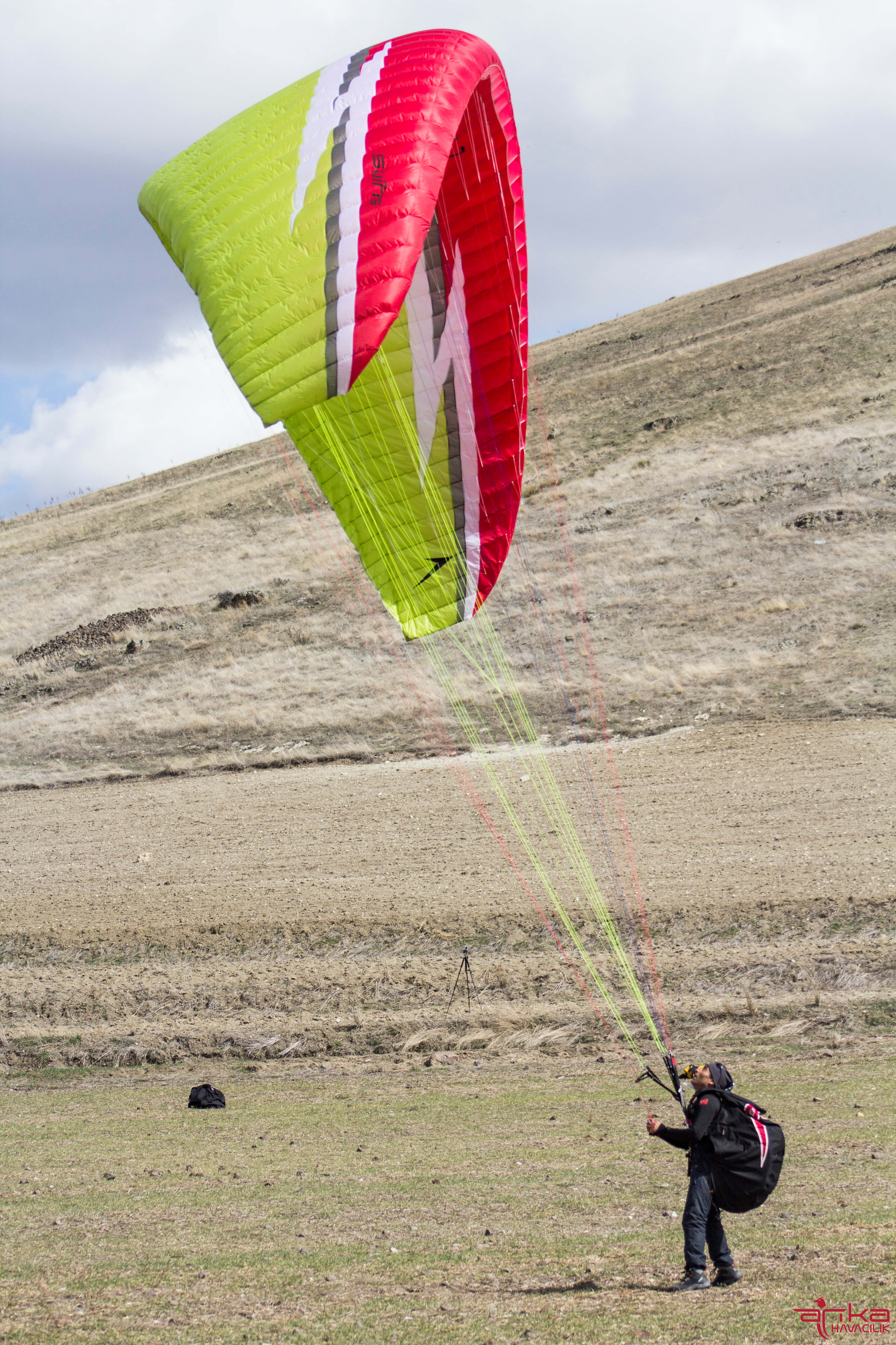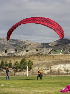 ” Yerde yamaç paraşütünü idare etme teknikleri ve çalışmalarının son derece yararlı olduğu kadar, uçmak isteyen pek çok pilotun mükemmelliğe ulaşmak için çok daha az bir zaman harcamasını sağladığı da göz önünde bulundurup motivasyonunuzu yükseltin.